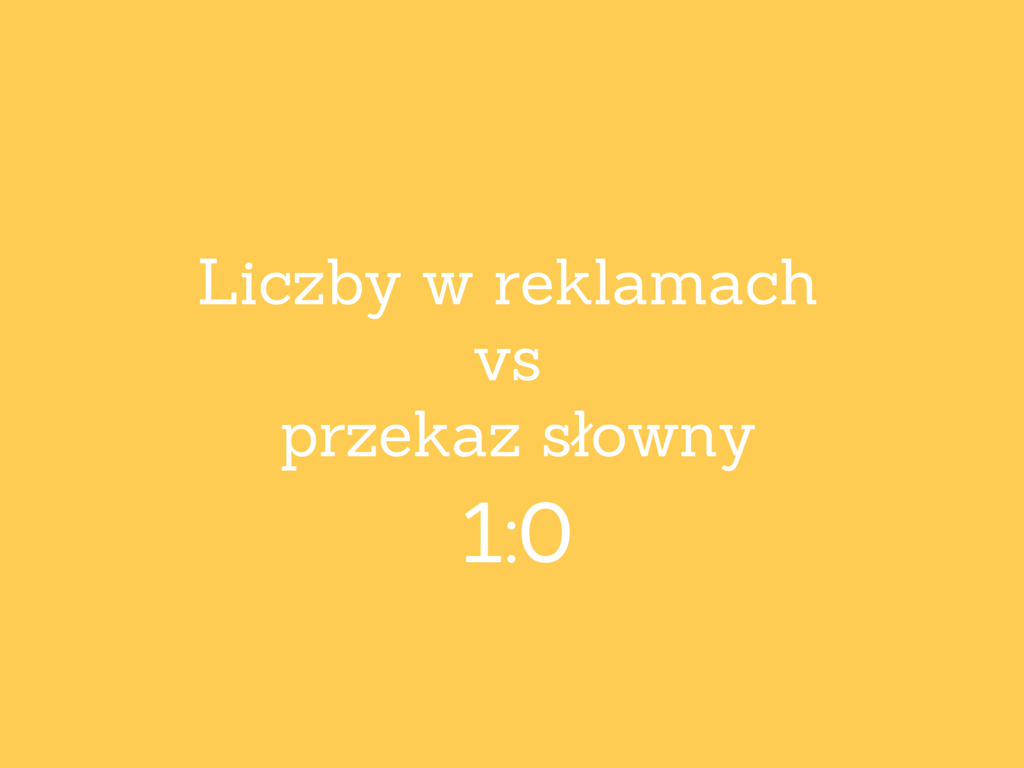 Z badania przeprowadzonego przez nas na kontach kilku Klientów wynika, że skuteczność przekazu wyrażonego przez liczby jest bardzo porównywalna do słownego. Analizowane fragmenty tekstu brzmiały: „Dostawa nawet w jeden dzień” vs „Dostawa nawet w 1 dzień” oraz „Zamawiaj produkty w Sieci 24/7” vs „Zamawiaj produkty w Sieci przez całą dobę” . Większą siłę sprzedażową miały kreacje z liczbami.