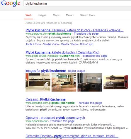 Jak widać na powyższych zrzutach ekranów, różnice nie są wielkie, lecz zauważalne. Niezmiennie na pierwszym miejscu znajduje się Paradyz.com, ale już na przykład strona Keramikos.pl straciła pozycję w top 5 podczas wyszukania z angielskim interfejsem, na rzecz strony Opoczno.eu