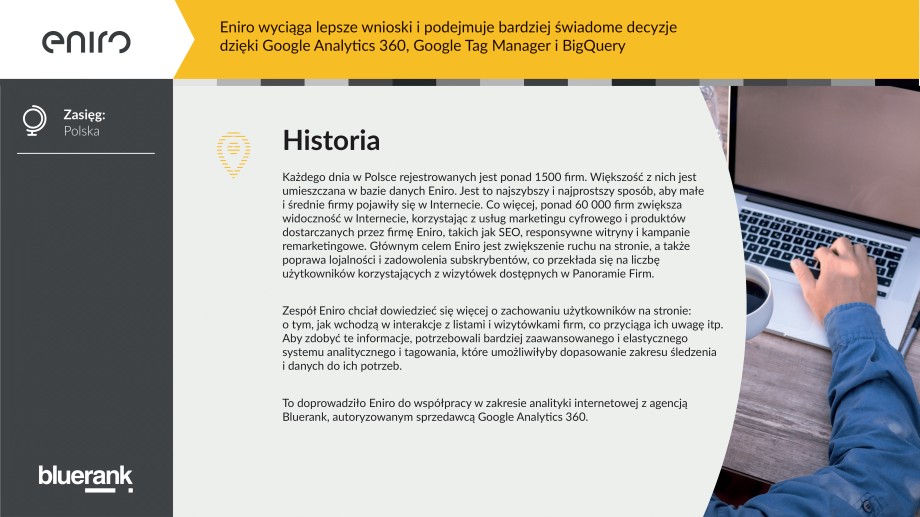 Eniro wyciąga lepsze wnioski i podejmuje bardziej świadome decyzje dzięki Google Analytics 360, Google Tag Manager i BigQuery. Pobierz PDF Wróć do portfolio